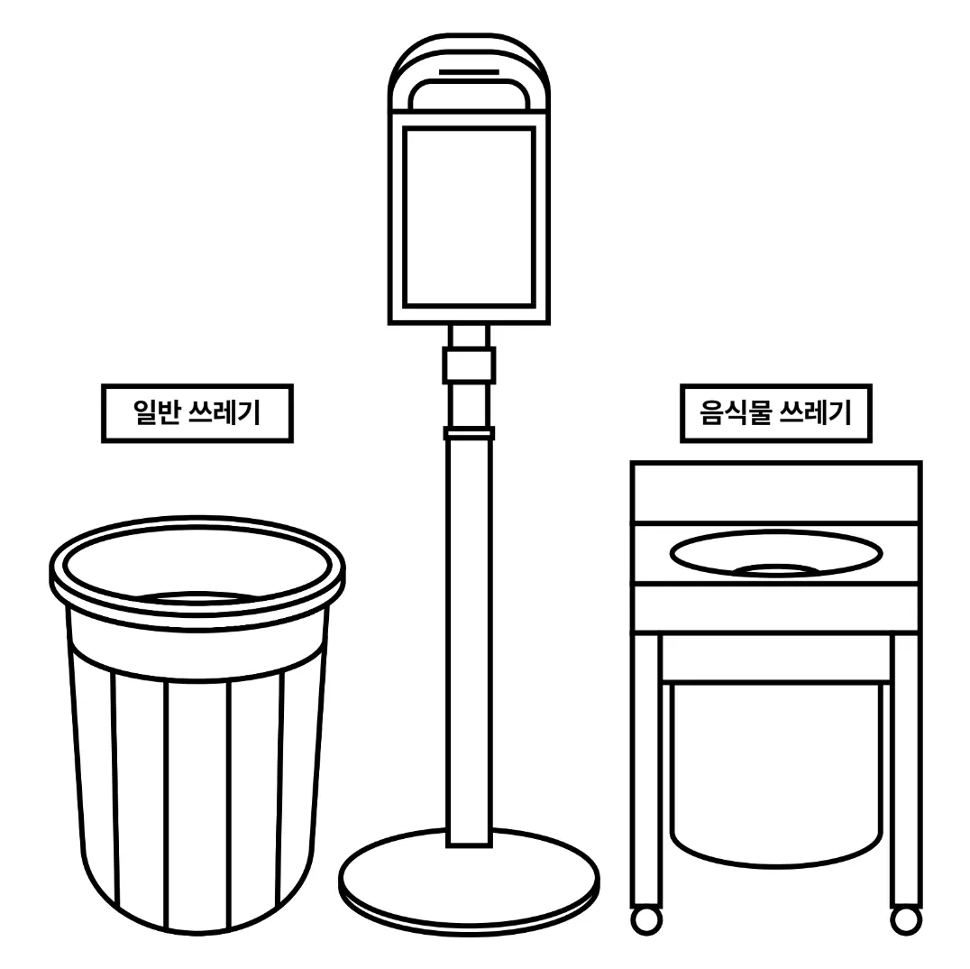 부산물(우유곽, 비닐봉지 등)은 미리 버릴수 있도록, 일반 쓰레기통을 퇴식 스캐너 앞에 배치해주세요.